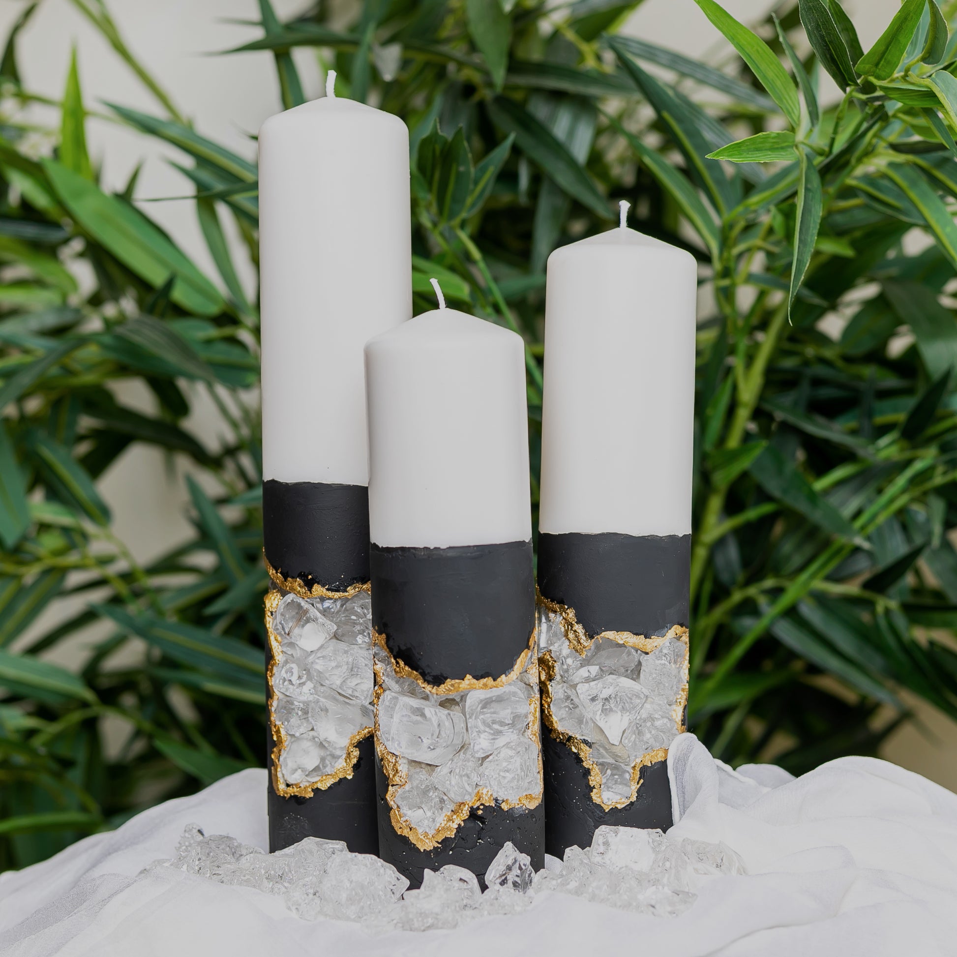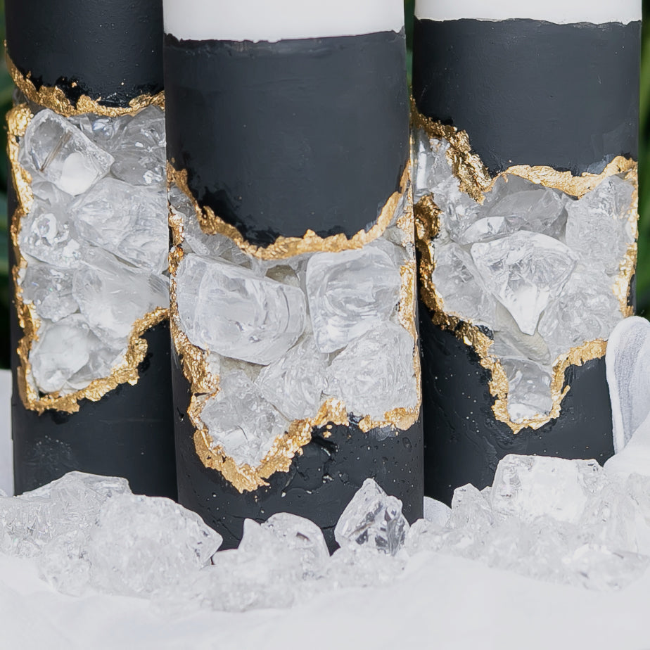 Illuminate your space with our Set of 3 Concrete Candles featuring Clear Crushed Glass. These candles seamlessly blend sturdy concrete with delicate glass sparkle, creating an enchanting glow. Elevate your ambiance and style with this modern and elegant trio.
